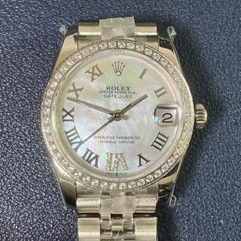 278384 RBRのデザインは独創的で、オイスターケースとダイヤモンド、ホワイトゴールド、オイスタースチールの完璧な融合は、この時計に独特の魅力を与えた。白い真珠母の文字盤にはダイヤモンドがはめ込まれており、まるで夜空の星のように輝いている。記念型(Jubilee)のバンドデザインは、手首にフィットするだけでなく、優雅さと高貴さを加えている。