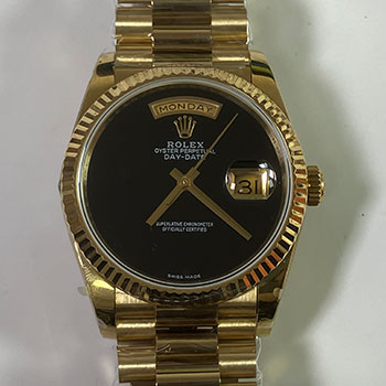 ロレックスDay-Dateシリーズ18238時計は、非常にクラシックで優雅な時計で、黒の文字盤を備えており、より簡潔で高貴に見える。この時計はロレックスの時計作りの真髄を代表するだけでなく、細部と品質に対するブランドの究極の追求を体現している。具体的には、次の実物図を見てください。